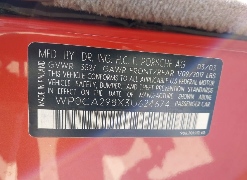 - VIN: WP0CA298X3U624674