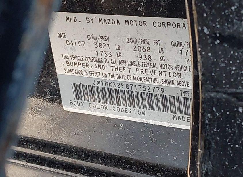 - Название лота: 2007 MAZDA MAZDA3 I