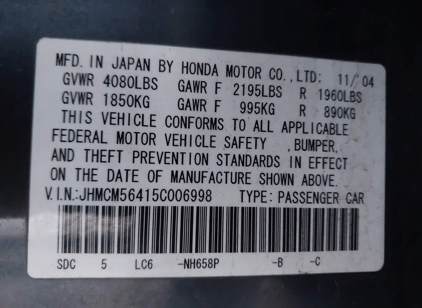 - VIN: JHMCM56415C006998
