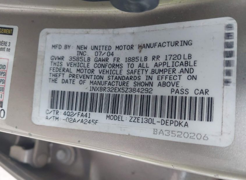 - VIN: 1NXBR32EX5Z384292