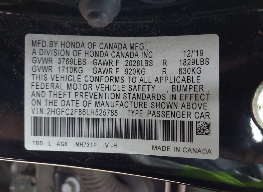 - VIN: 2HGFC2F86LH525785