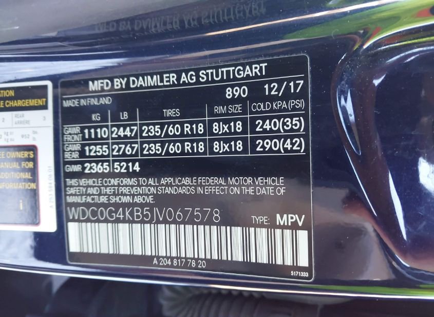 - VIN: WDC0G4KB5JV067578