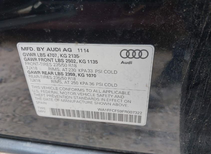 - VIN: WA1FFCFS9FR007322