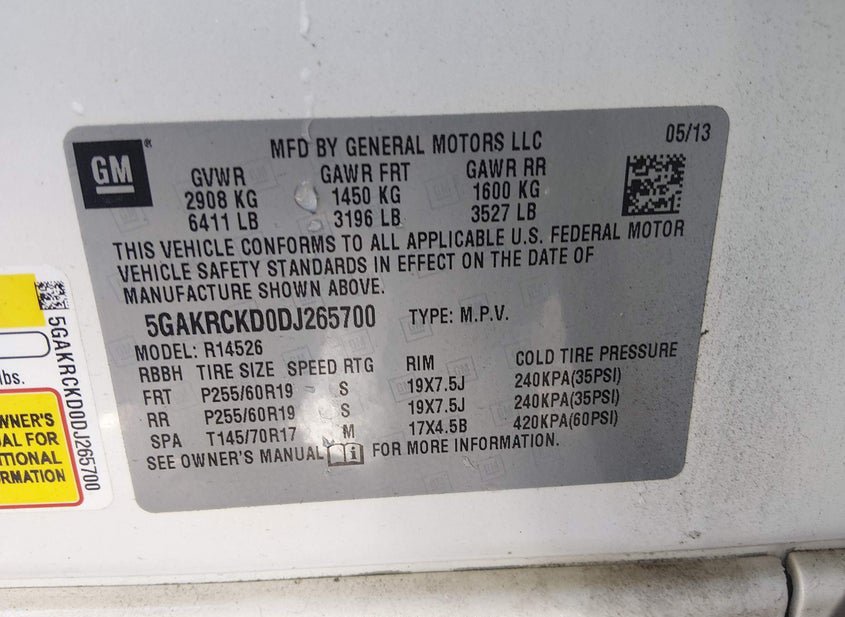 - VIN: 5GAKRCKD0DJ265700