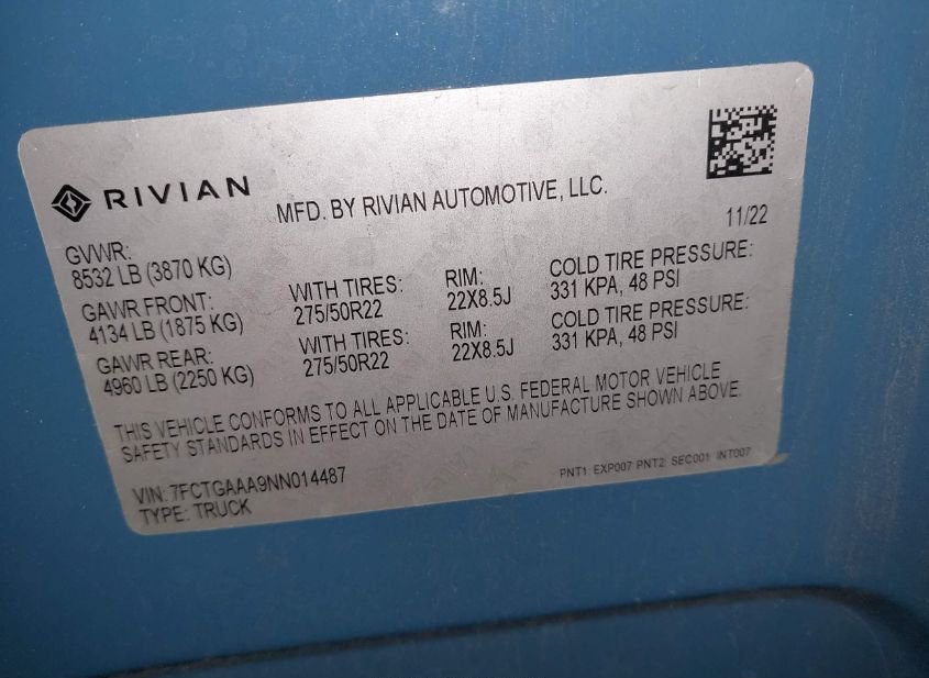 - Название лота: 2022 RIVIAN R1T ADVENTURE