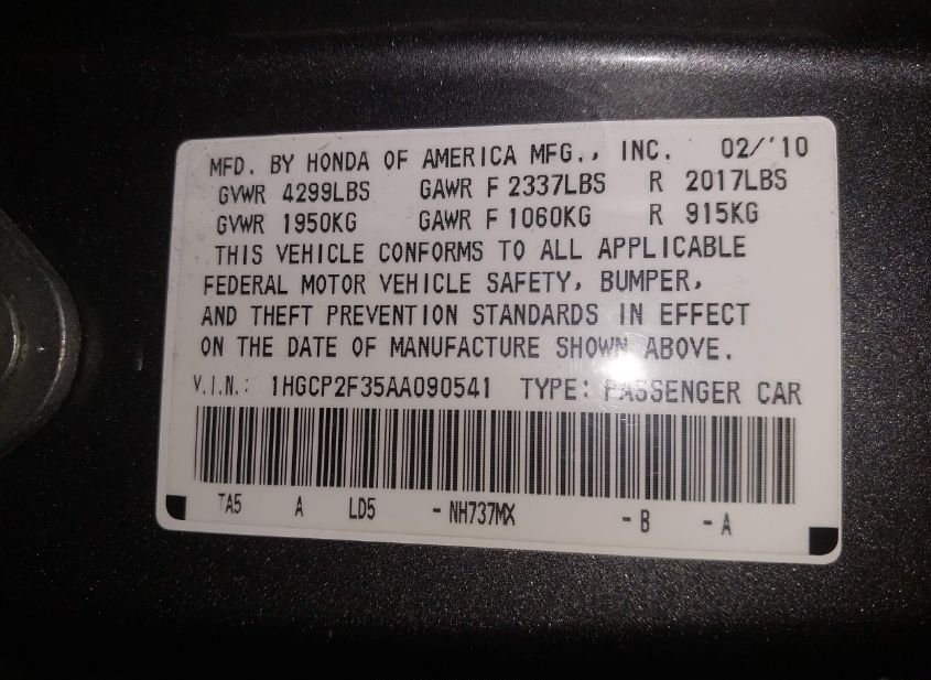 - VIN: 1HGCP2F35AA090541