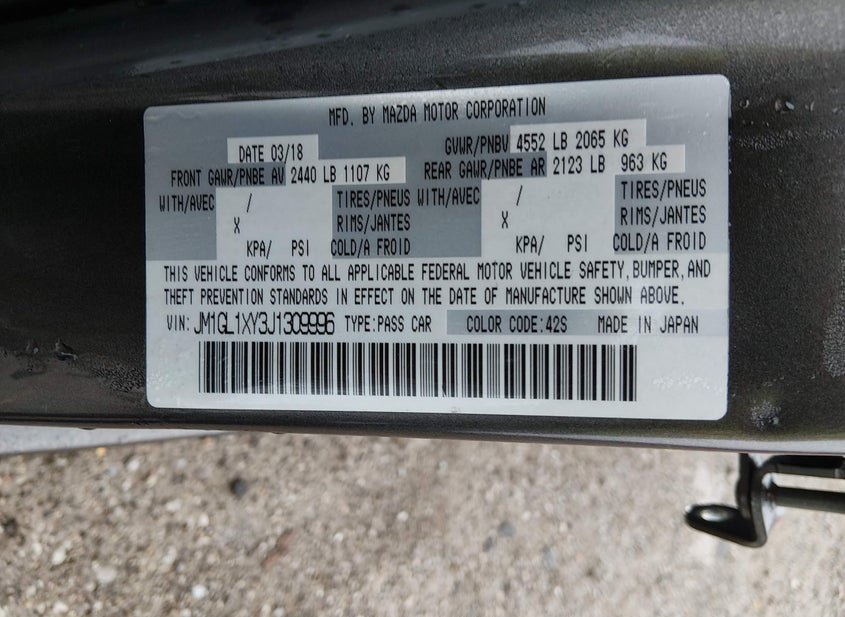- VIN: JM1GL1XY3J1309996