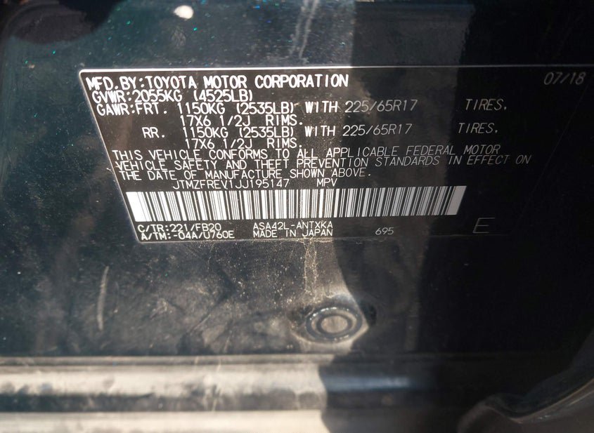 - VIN: JTMZFREV1JJ195147