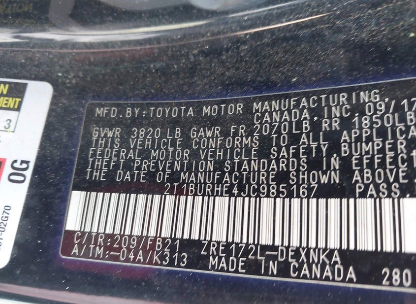 - VIN: 2T1BURHE4JC985167