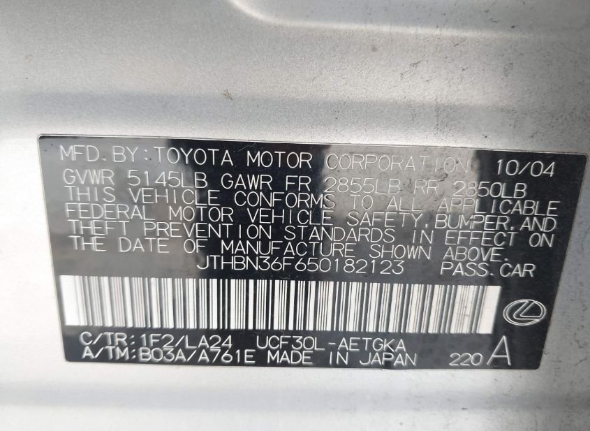- VIN: JTHBN36F650182123