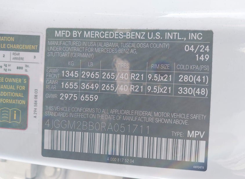 - VIN: 4JGGM2BB0RA051711