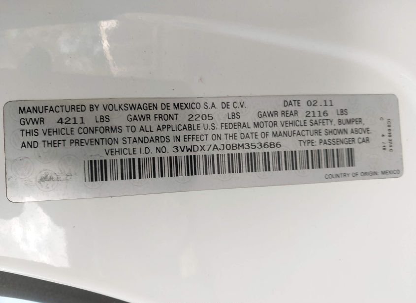 - VIN: 3VWDX7AJ0BM353686