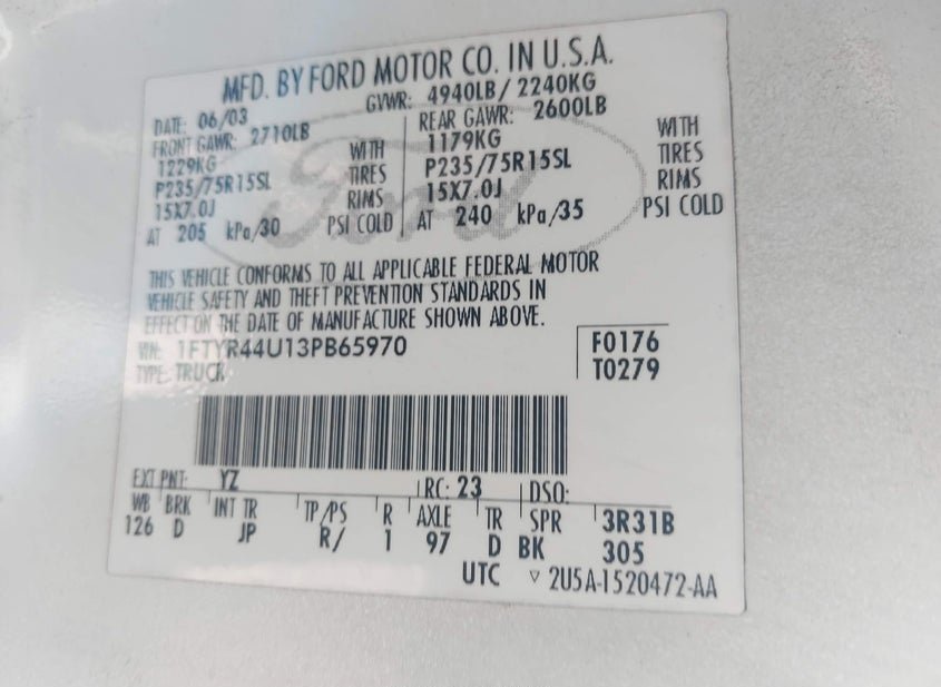 - VIN: 1FTYR44U13PB65970