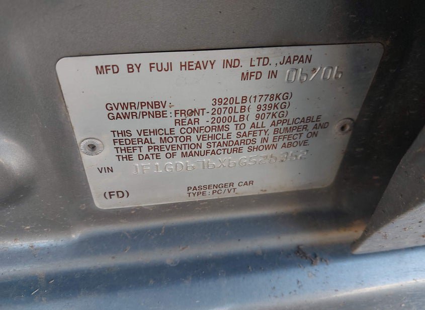 - VIN: JF1GD676X6G526352