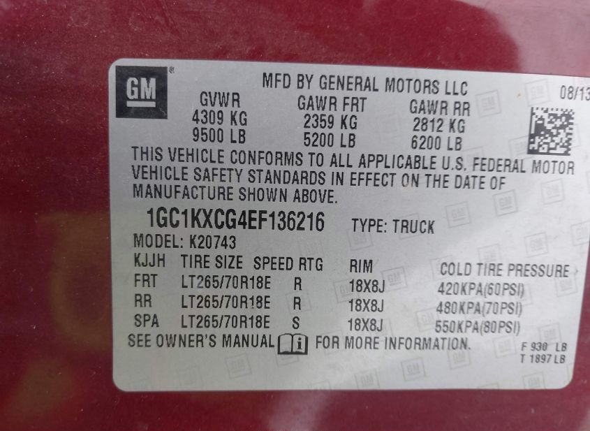 - VIN: 1GC1KXCG4EF136216