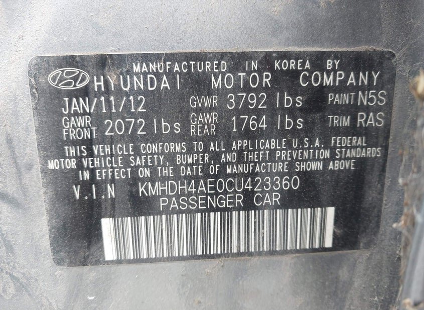 - VIN: KMHDH4AE0CU423360