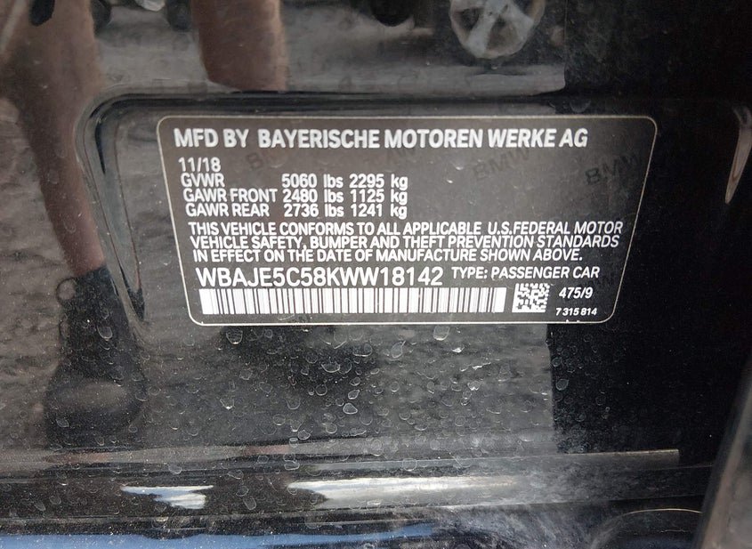 - VIN: WBAJE5C58KWW18142