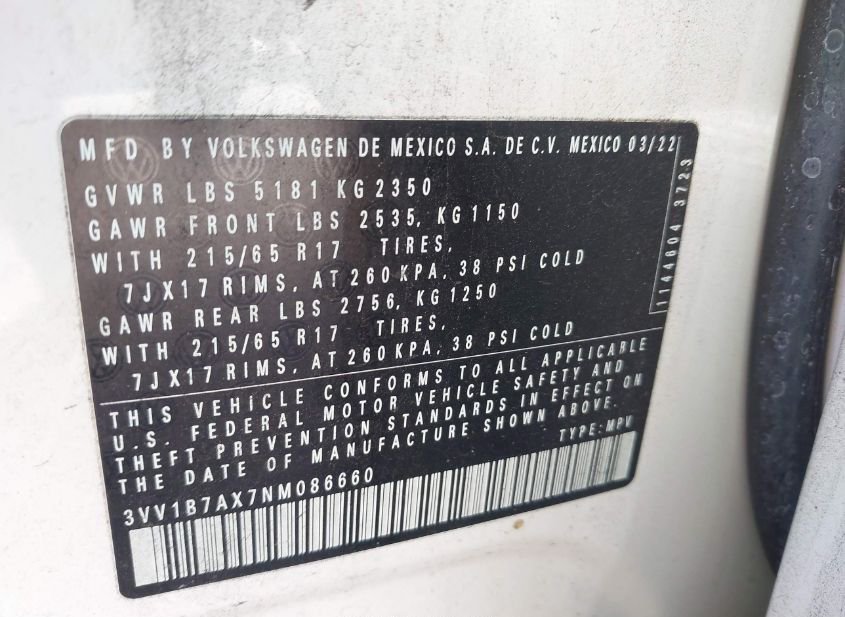 - VIN: 3VV1B7AX7NM086660