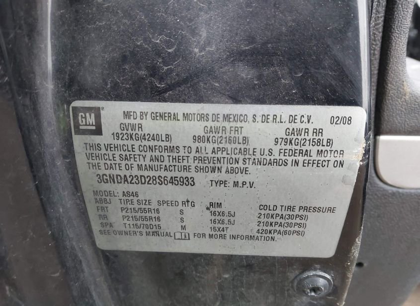 - VIN: 3GNDA23D28S645933