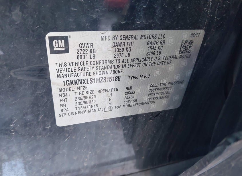 - VIN: 1GKKNXLS1HZ315188