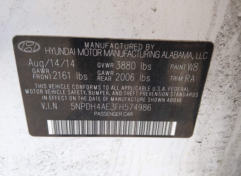 - VIN: 5NPDH4AE3FH574986