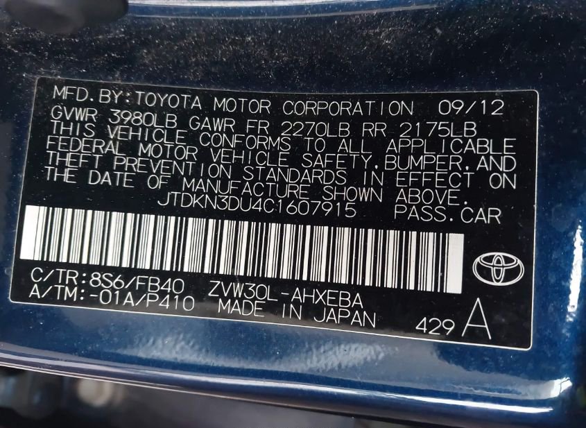 - VIN: JTDKN3DU4C1607915