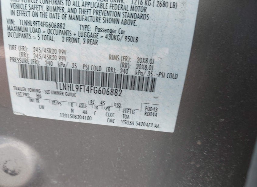 - VIN: 1LNHL9FT4FG606882