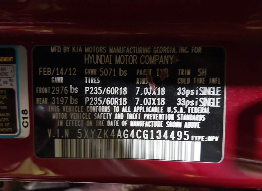 - VIN: 5XYZK4AG4CG134495