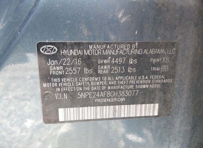 - VIN: 5NPE24AF8GH383077