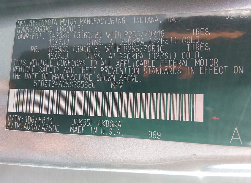 - VIN: 5TDZT34A05S255660