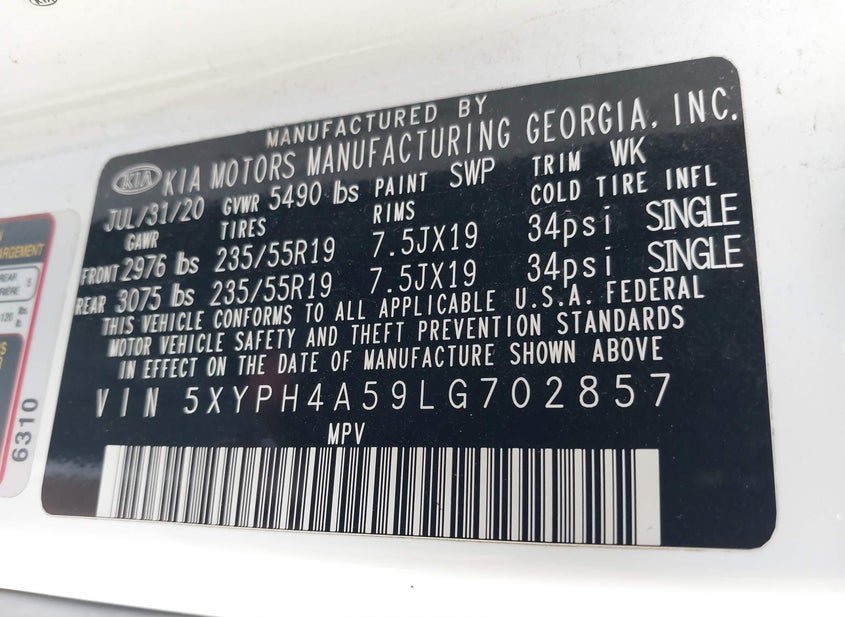- VIN: 5XYPH4A59LG702857
