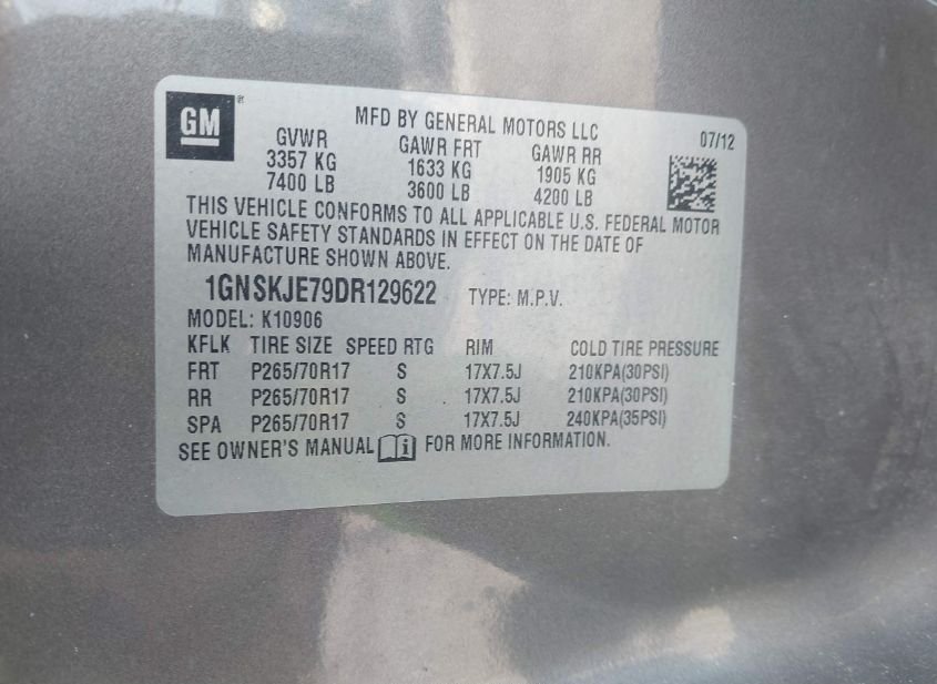 - VIN: 1GNSKJE79DR129622