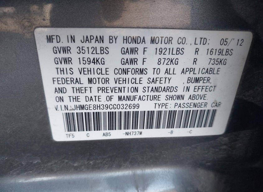 - VIN: JHMGE8H39CC032699