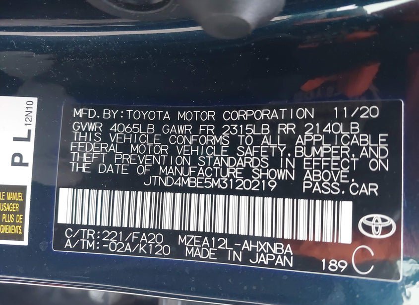 - VIN: JTND4MBE5M3120219