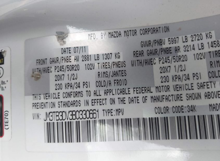 - VIN: JM3TB3DV3B0330661
