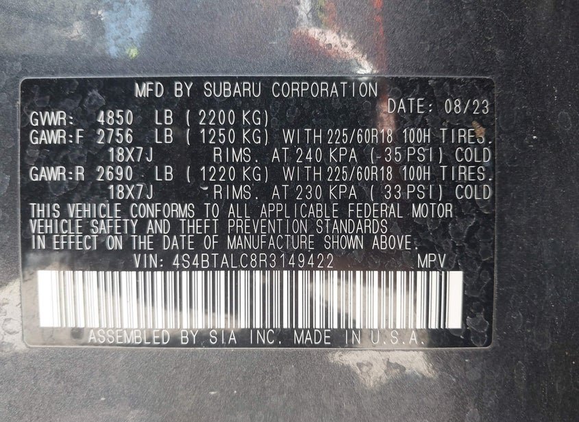 - VIN: 4S4BTALC8R3149422