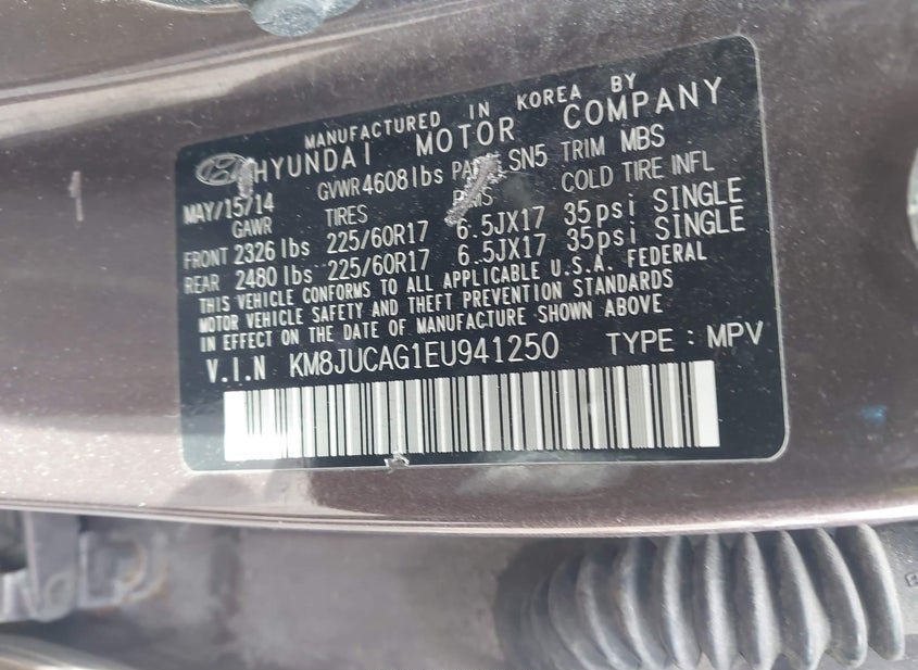 - VIN: KM8JUCAG1EU941250