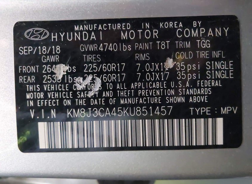 - VIN: KM8J3CA45KU851457