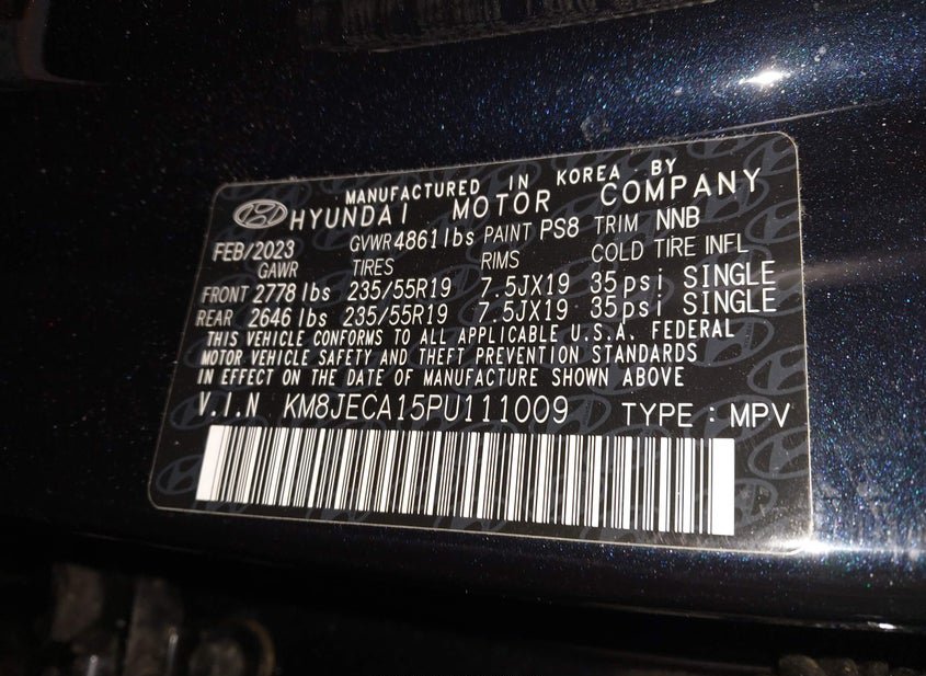 - VIN: KM8JECA15PU111009