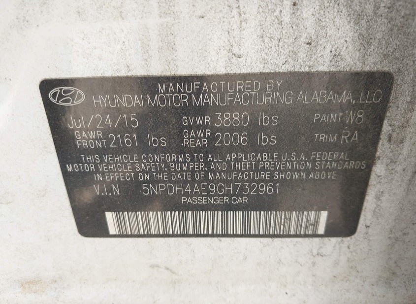 - VIN: 5NPDH4AE9GH732961
