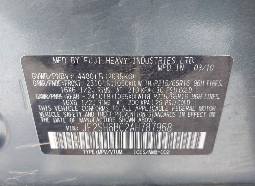 - VIN: JF2SH6BC2AH787968