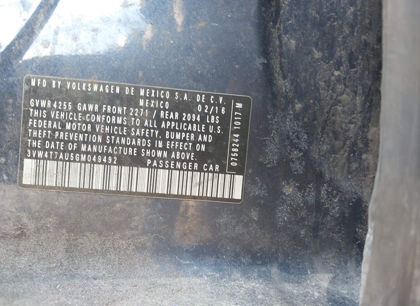 - VIN: 3VW4T7AU5GM049492
