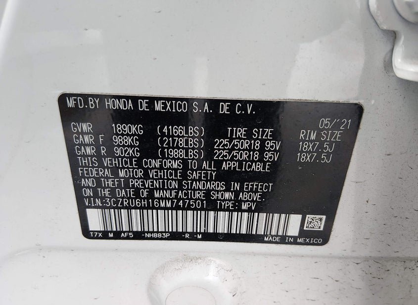 - VIN: 3CZRU6H16MM747501