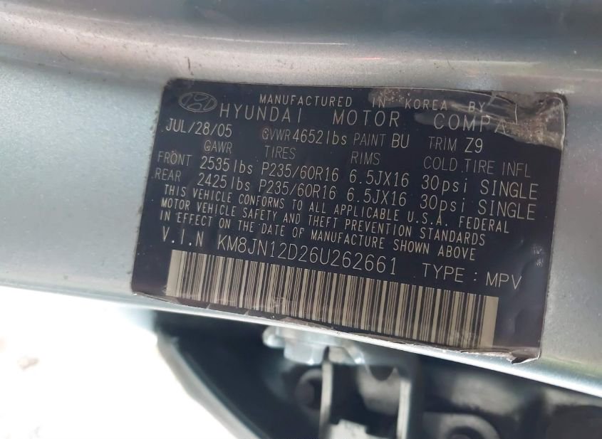 - VIN: KM8JN12D26U262661