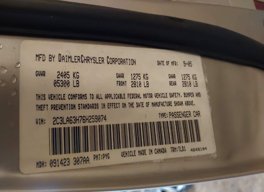 - VIN: 2C3LA63H76H259074