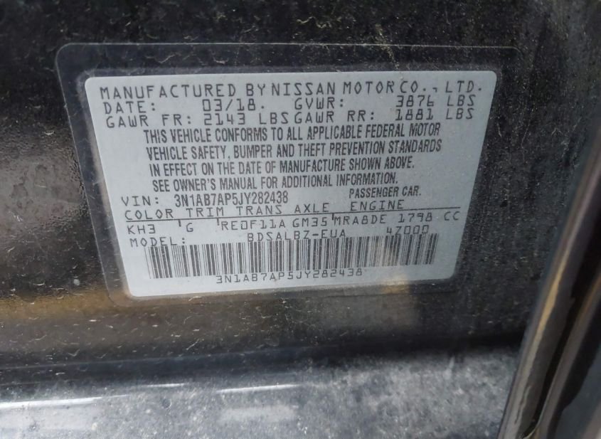 - VIN: 3N1AB7AP5JY282438