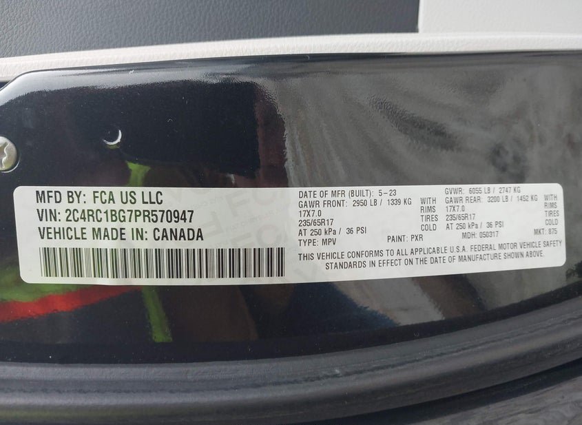 - VIN: 2C4RC1BG7PR570947