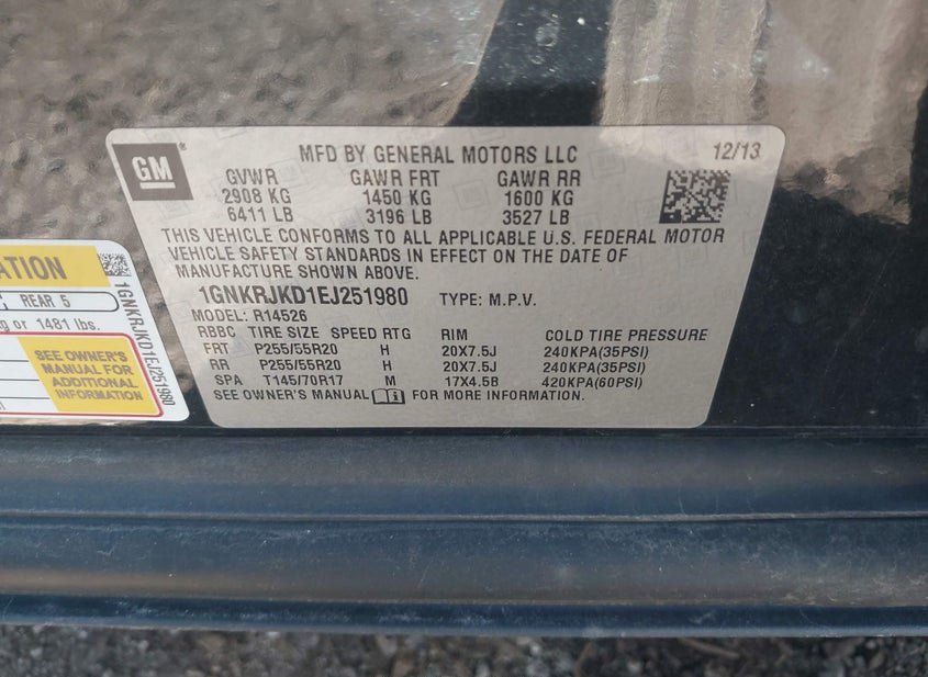 - VIN: 1GNKRJKD1EJ251980