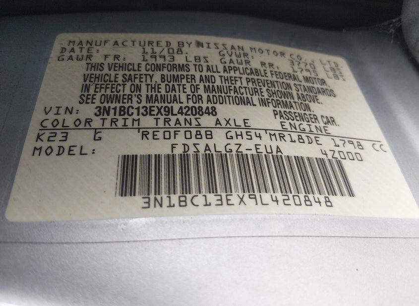 - VIN: 3N1BC13EX9L420848
