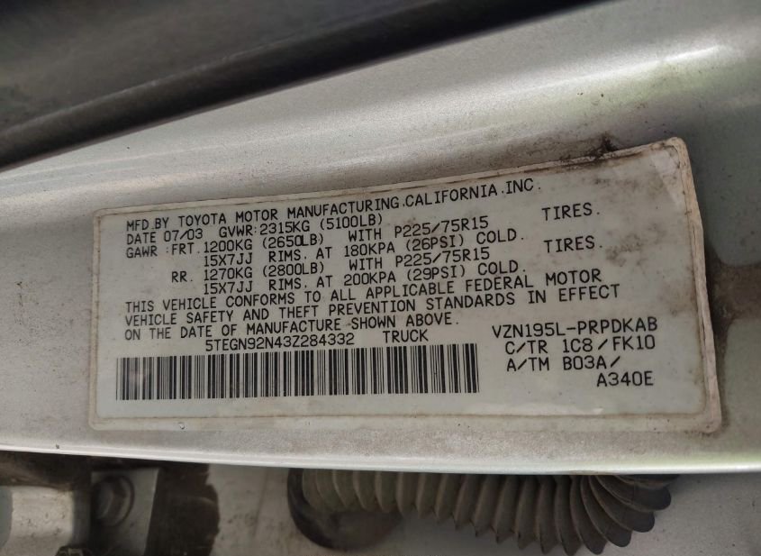 - VIN: 5TEGN92N43Z284332